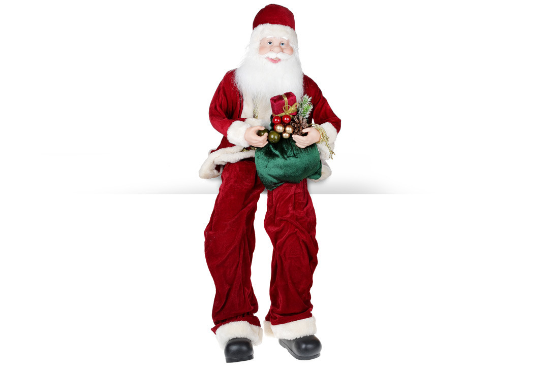 Новорічна іграшка Сидячий Санта 80 см, колір — червоний, пластик + тканина, 1 шт. ( NY14-492)