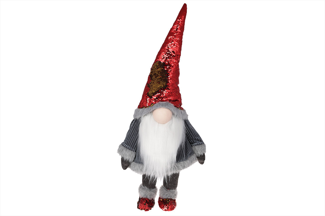 М'яка іграшка Гном, 90 см, колір — сірий із червоним у паєтках (910-221)