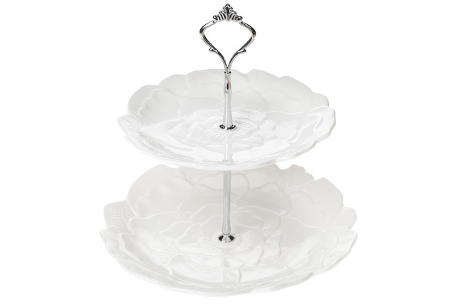 Етажерка порцеляновий двоярусна Квітка, 23см, колір - білий(988-198)