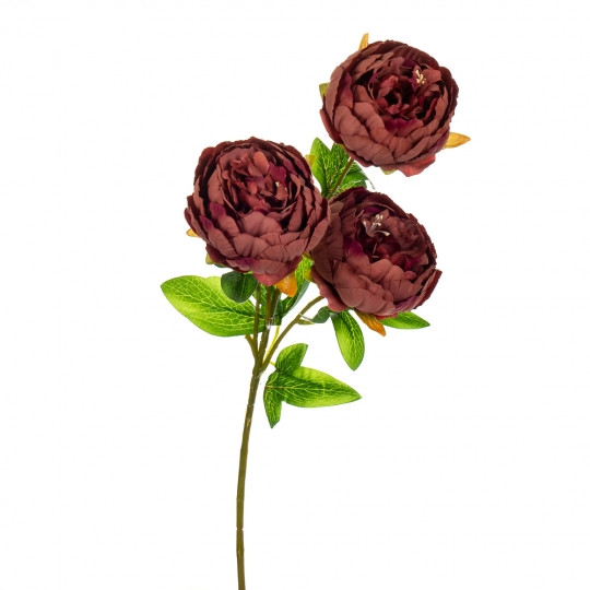 Букет, півонії з трьома бутонами, бордовий, 56 см, у пакованні 2 штуки. (8114-015)
