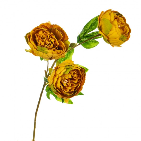 Букет, півонії з трьома бутонами, жовтогарячий, 56 см, у пакованні 12штуки. (8114-016)