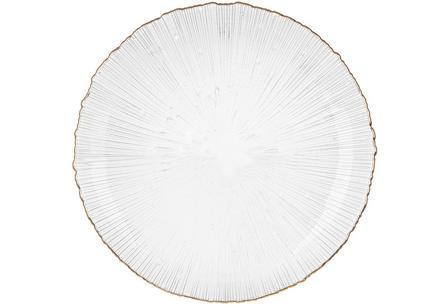 Сервірувальна тарілка скляна, колір — прозорий із золотим обідком, 21 см., (992-089)