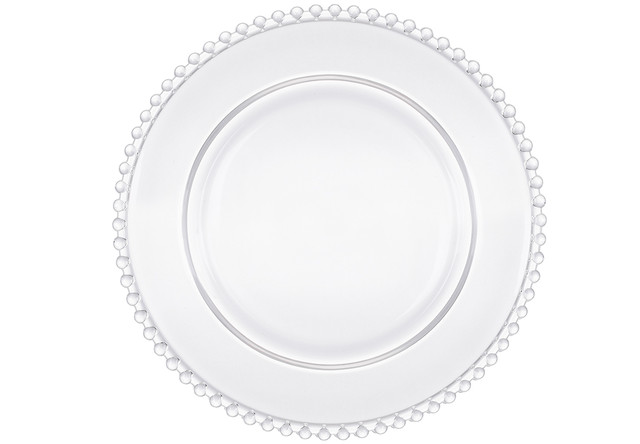 Сервірувальна тарілка скляна, колір — прозорий зі скляним декором, 23.5*2 см, в пакованні 2 шт. (992-010)