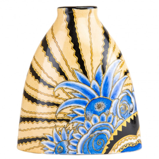 Ця керамічна ваза, увійшовши у світ жовтих і синіх відтінків, сприймає світ української символіки та культурних традицій. Блакитнувато-сині елементи на тлі золотистої основи схожі на розкішні соняшники, що символізують багатство та плодовитість української землі.