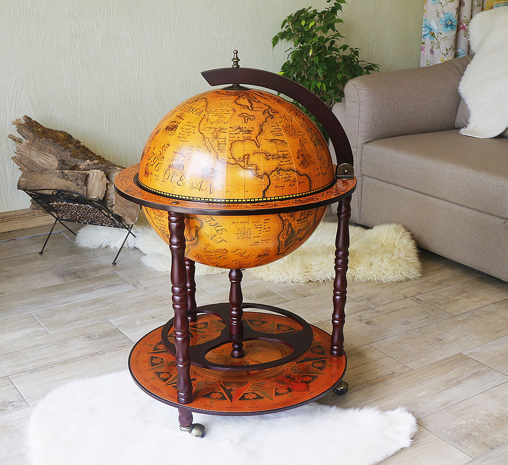 Підлоговий глобус бар — це ексклюзивний дорогий виріб, який вважається ознакою розкоші та достатку! Під час його створення використовуються фрагменти середньовічних карт 16 століття і зображення зодіакальних сузір'їв. Це прекрасний спосіб прикрасити робочий кабінет, вітальню або їдальню. В інтернет-магазині подарунків і сувенірів SUNDUCHOK представлені підлогові та настільні моделі глобус-барів у різному дизайні та стилі оформлення!