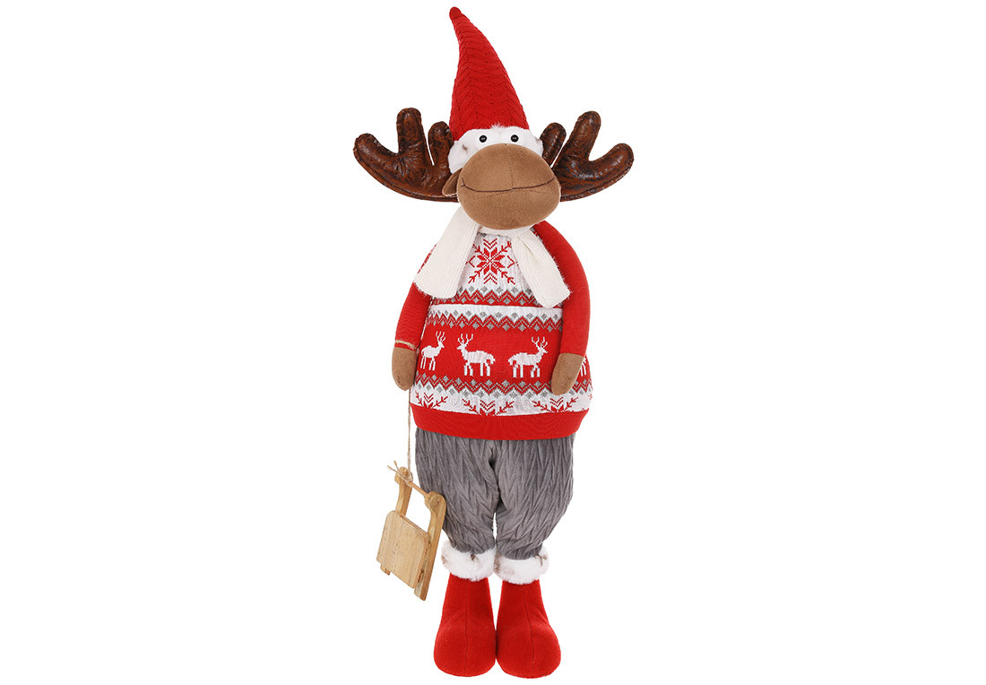 М'яка іграшка Олень із санками 25*22*8 см, сірий з червоним (877-377)